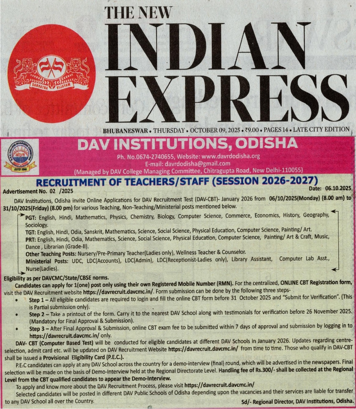 ADVERTISEMENT CLIPPING OF THE NEW INDIAN EXPRESS ON 09.10.2025